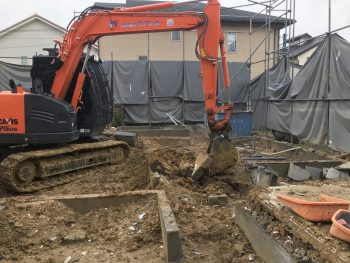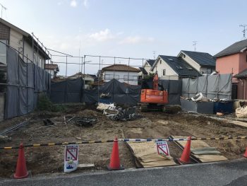 基礎撤去工事、順調に進んでいます。工事終盤ですが、近隣に粉塵、振動などご迷惑がない様努めます。